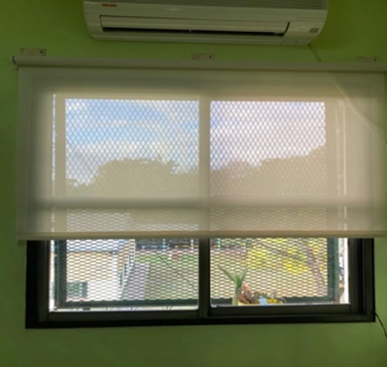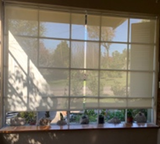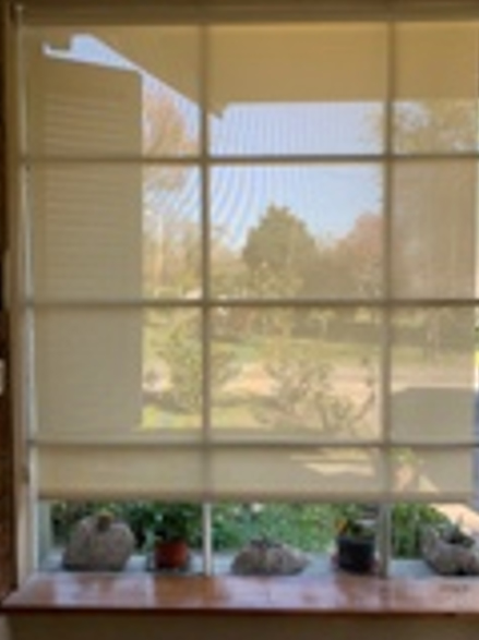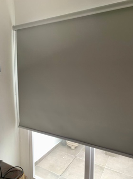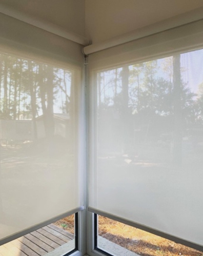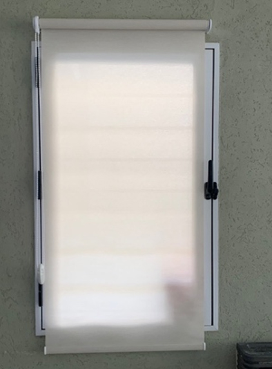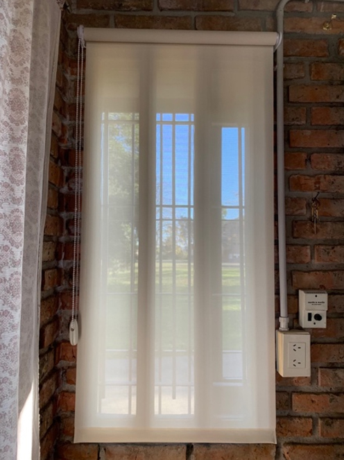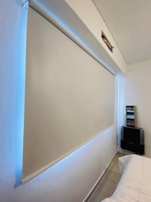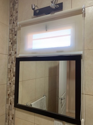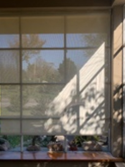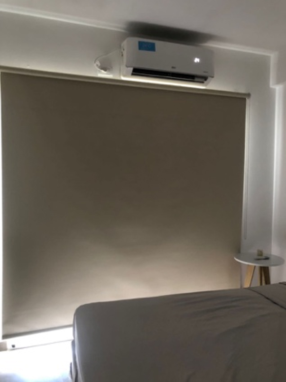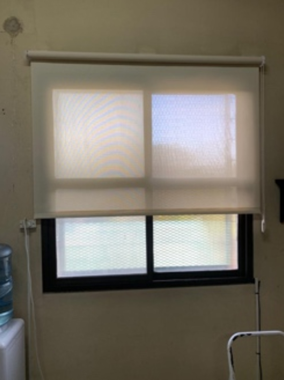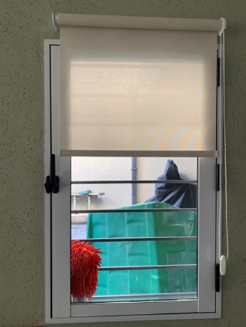 Cortinas Roller Traslúcida color beige y en baños Roller Sunscreen 5%.
